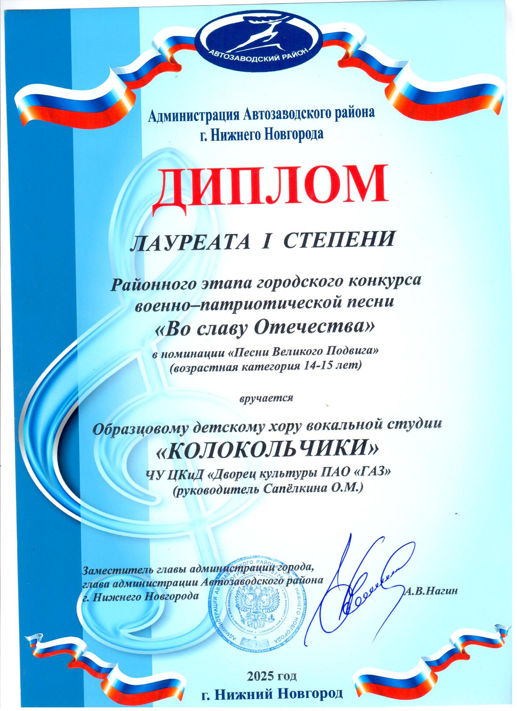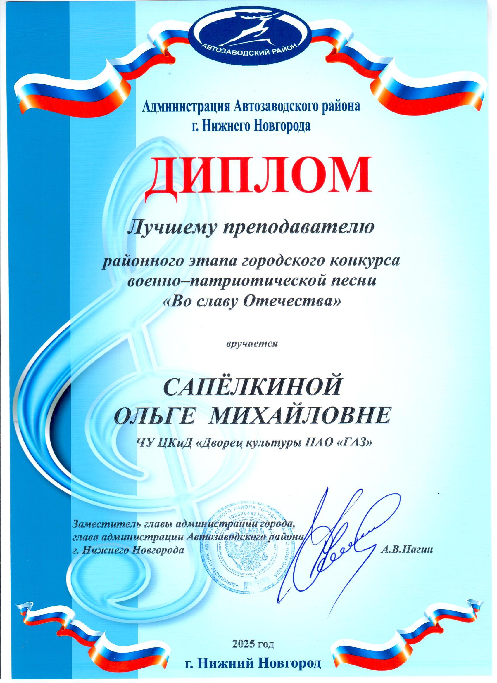 - Благодарственными письмо Администрация Автозаводского района.