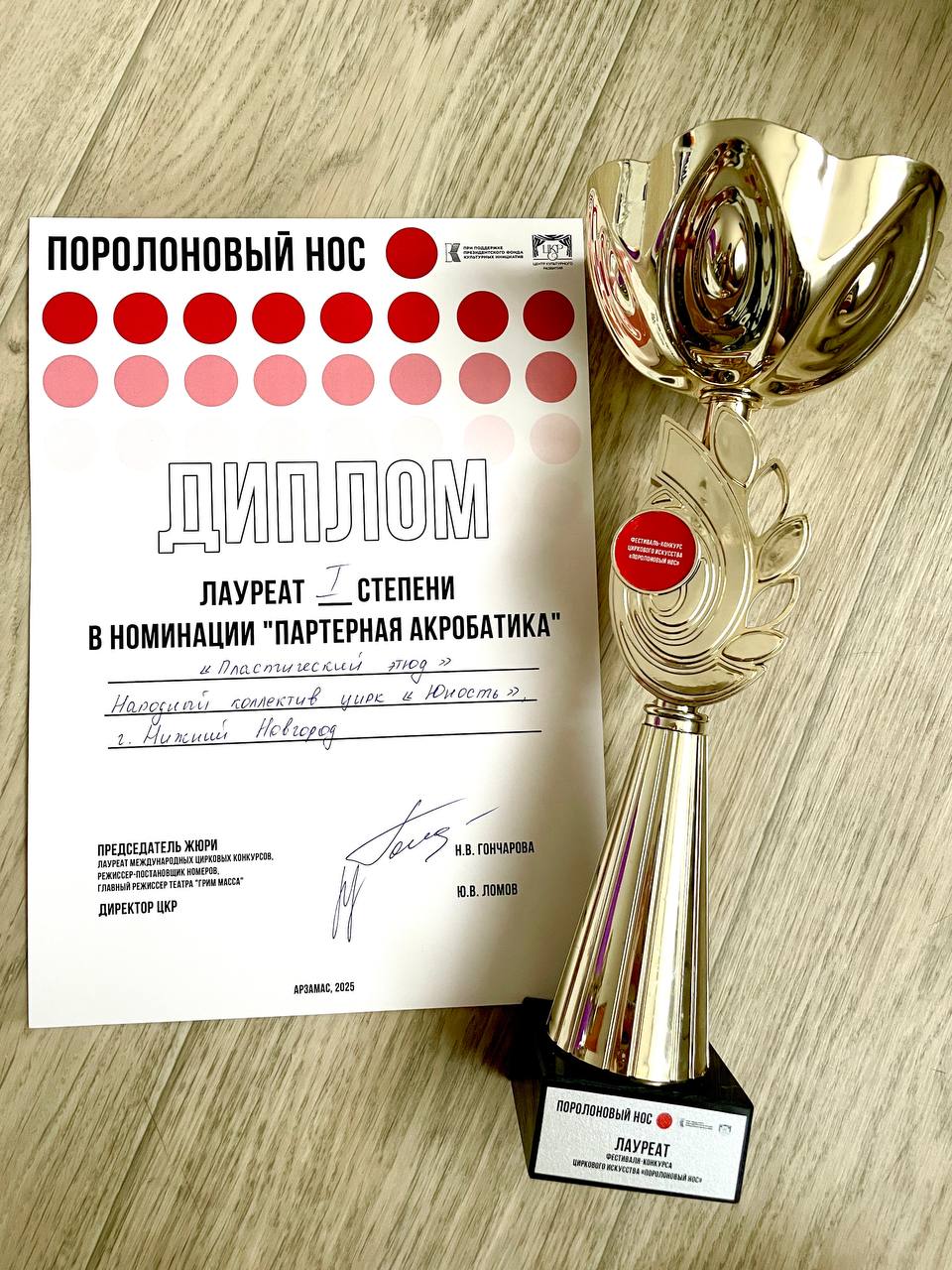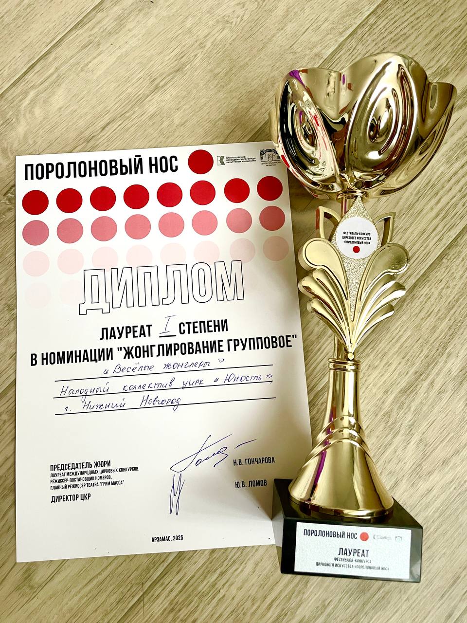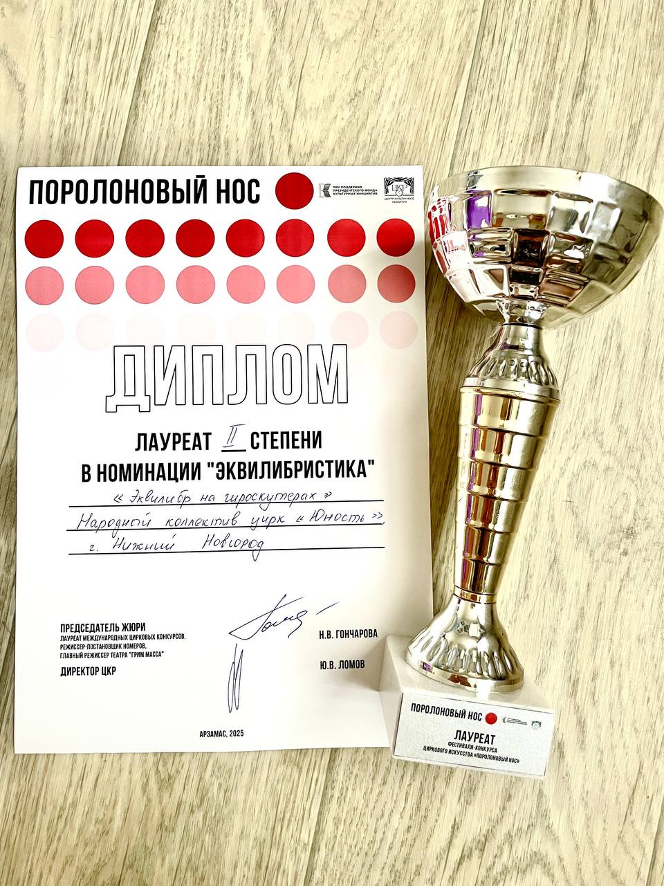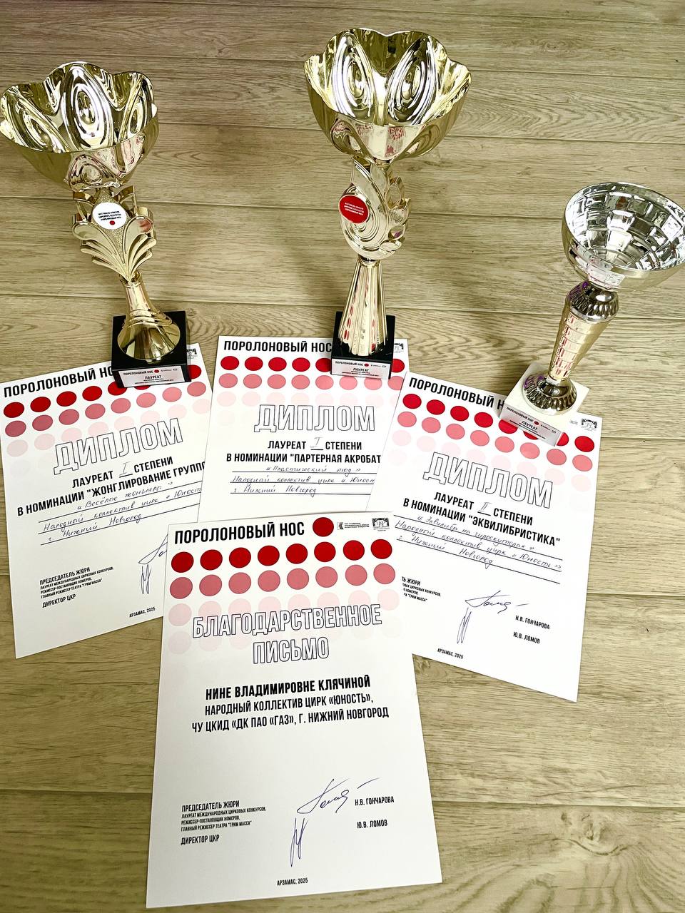 - 2015г.- г.Дзержинск –XI Областной конкурс хореографических и цирковых коллективов «Нижегородская мозаика»-Диплом III степени в номинации «Цирковое искусство» -сольное выступление от 5 до 10 лет солисты Дубков Юрий и Дубков Евгений .
