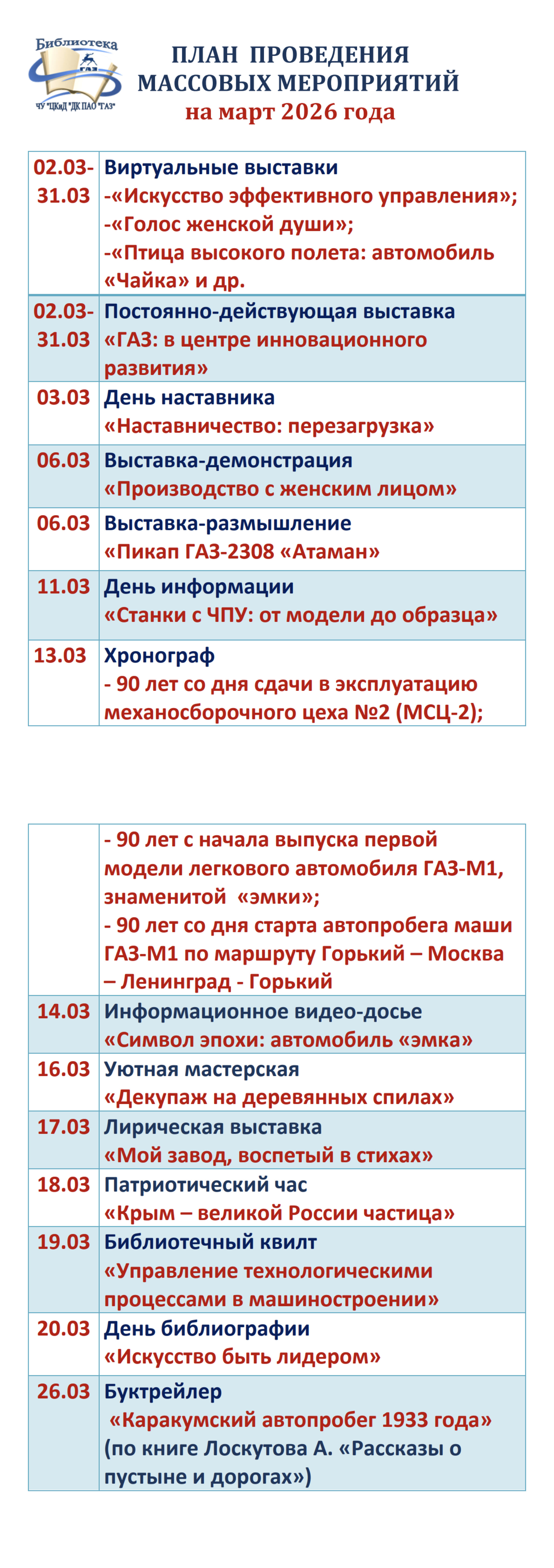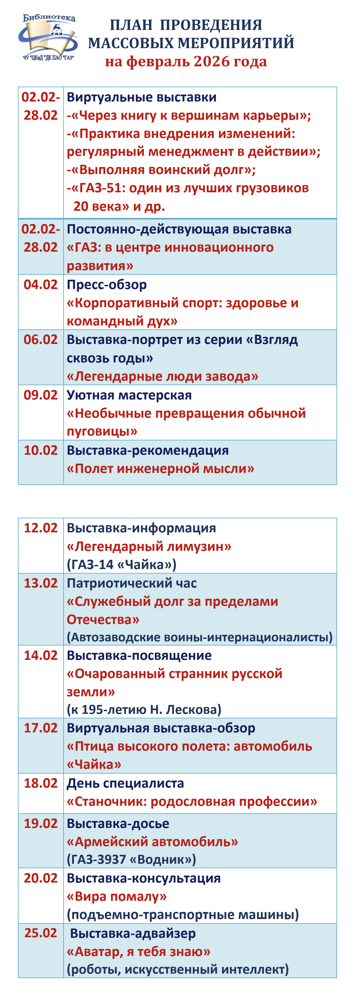 Услуги библиотеки ЧУ «ЦКиД ДК ГАЗ»