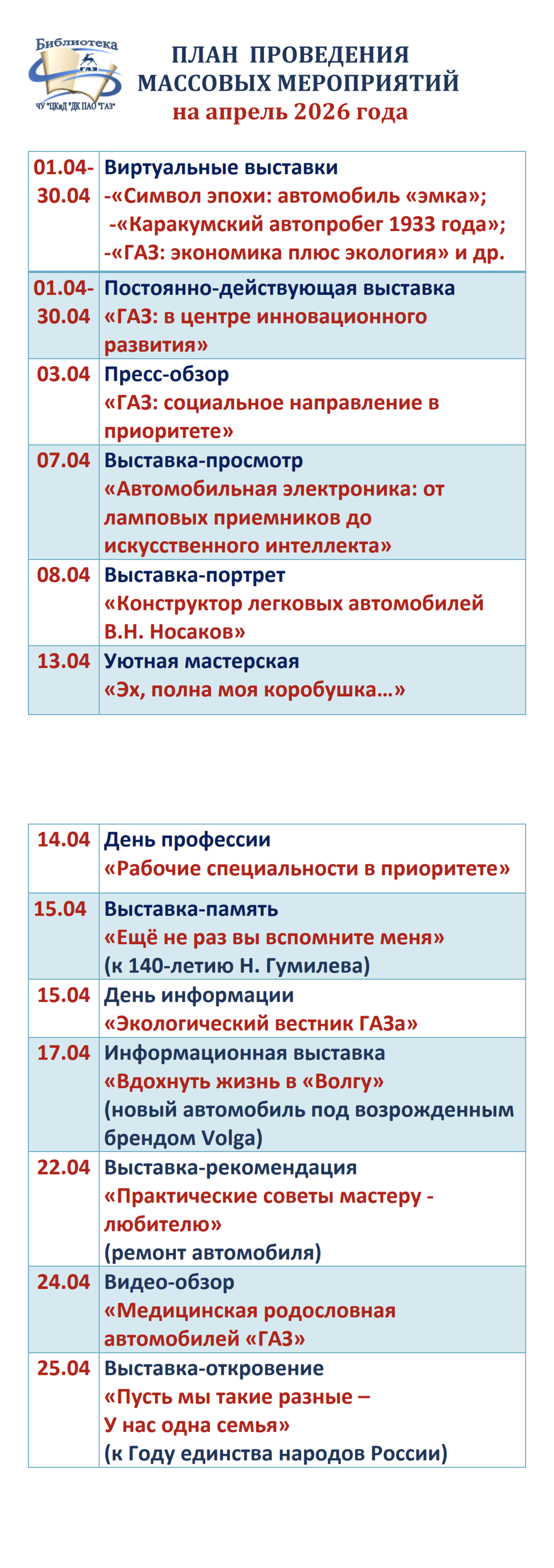 Услуги библиотеки ЧУ «ЦКиД ДК ГАЗ»