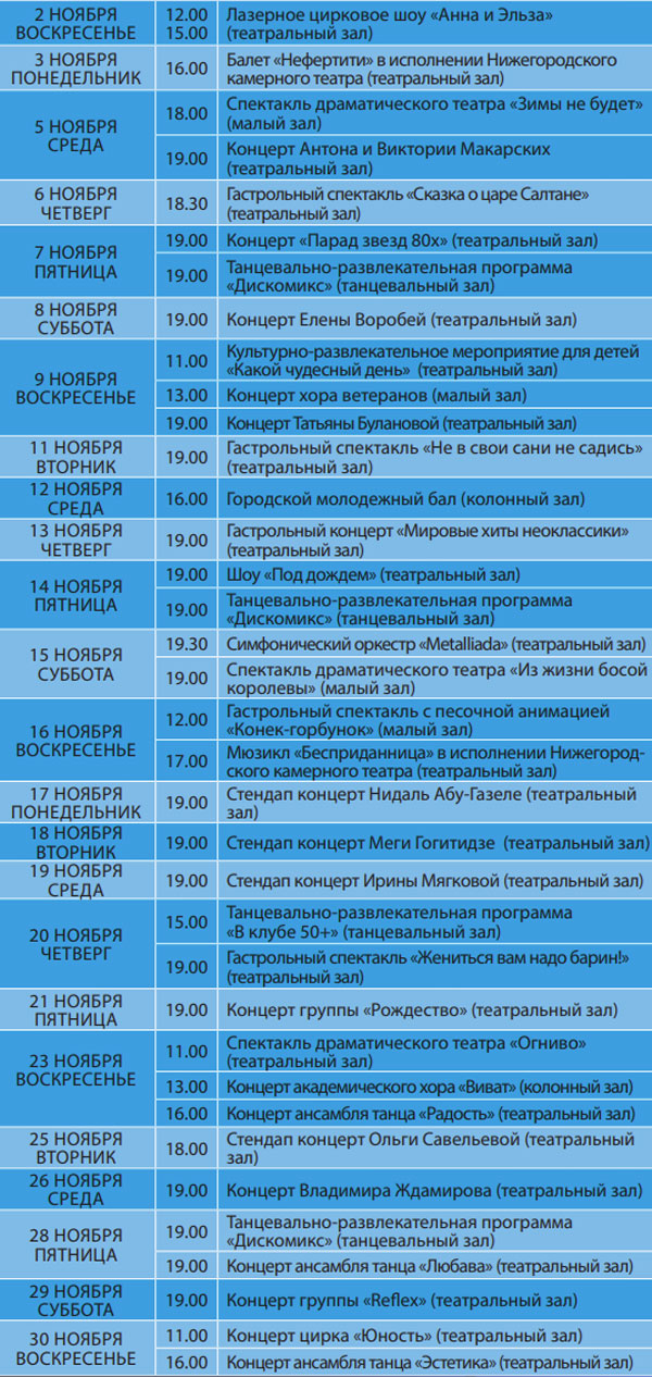 Календарь мероприятий на Ноябрь 2025 года