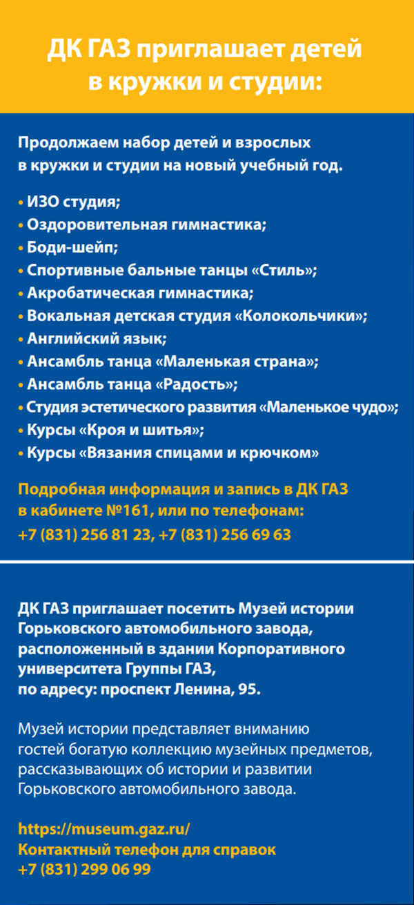 Записаться самому или записать своего ребенка в любой кружок, студию или творческий коллектив ДК ГАЗ, Вы легко сможете, не выходя из дома, прямо здесь