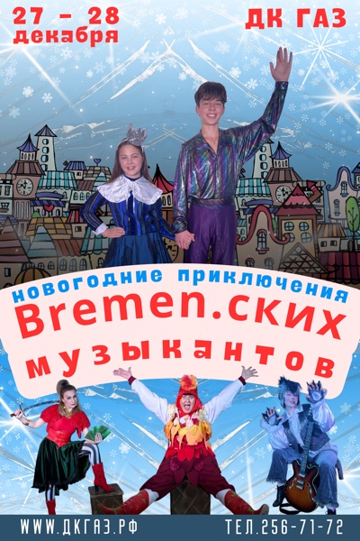«Новогодние приключения Бременских музыкантов» — это интерактивный музыкальный спектакль для всей семьи, где всех ждут приключения Трубадура и его друзей в ожидании Нового года.